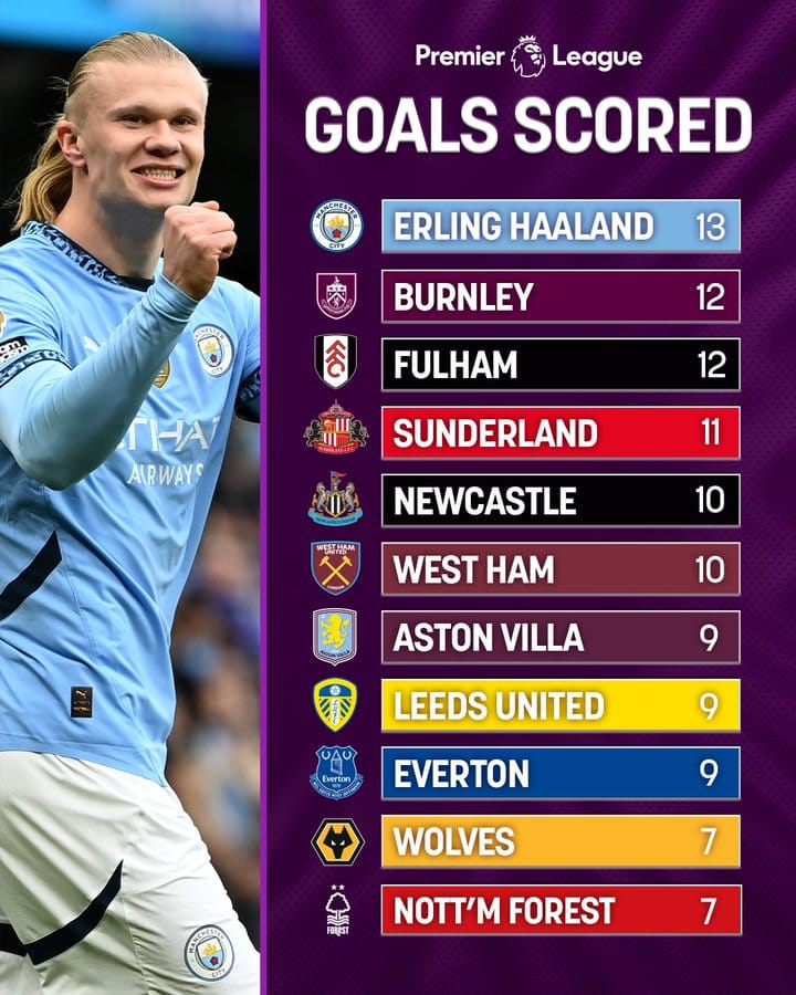 Most goals ever in the EPL after 10 matches - Erling Haaland with 15 (2022/23), 13 (25/26), 11 (23/24), 11 (24/25). Only Les Ferdinand (Newcastle) sits with Haaland with 11 in 1995/96.