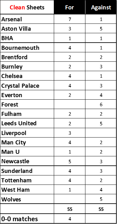 | Clean Sheets 6 Match Week 10 5.3 25/26 Season Average (G/MW)