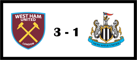 ![]() | Finally. West Ham came to play and maybe the Hammer’s fans can take a breath. Newcastle struck first at 4’ but WH scored at 35’ and then got a 45+5’ own goal to take the HT lead. A 90+7’ goal put the game away late and Newcastle’s defense was not what it has been to this point in the season. |