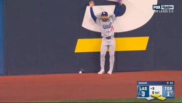 Dodgers up 3-1 in 9th, runner on and no one out. The Jay’s Barger hits a ball deep to left center that somehow hits the bottom of the wall PERFECTLY to lodge between the ground and the bottom of the fence padding. With a great heads up play, both the left and center fielders quickly held their hands into the air to signal a lodged ball and the umpires immediately call ground rule double. Instead of a run scoring and runner on third, it’s runners on second and third and no one out. A pop up to first was followed by a short sinking liner to left field which was caught on the run and quickly thrown to second. Bad base running from Toronto and Barger was doubled off second base. Game over.