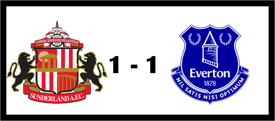 ![]() | Fair Result. Everton dominated the 1H and could’ve been up 2+ yet it was only 1-0 at HT. Sunderland dominated the 2H and could’ve scored 2+ goals but found the net one time at 46’. A draw is the proper result. |