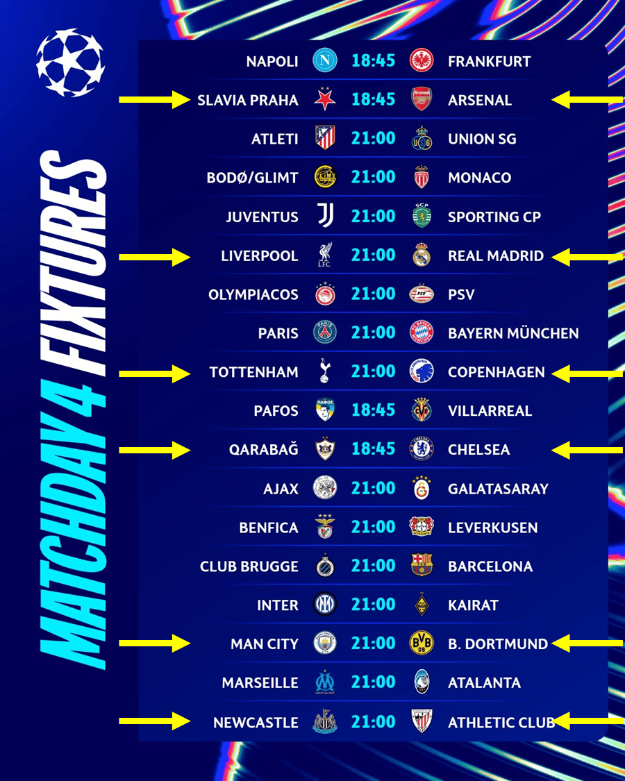 Champions League Match 4 of 8 - Tue, Wed Road Games