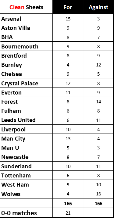 Goals and Clean Sheets this weekend, right on average, 27 and 5.