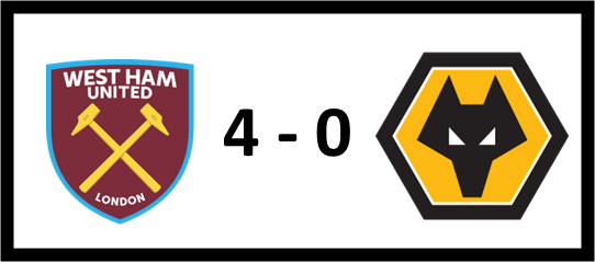 Any chance Wolves had at staying up were completely shut down with a 0-4 loss at West Ham. By the way, big win for the Hammers moving them out of relegation.