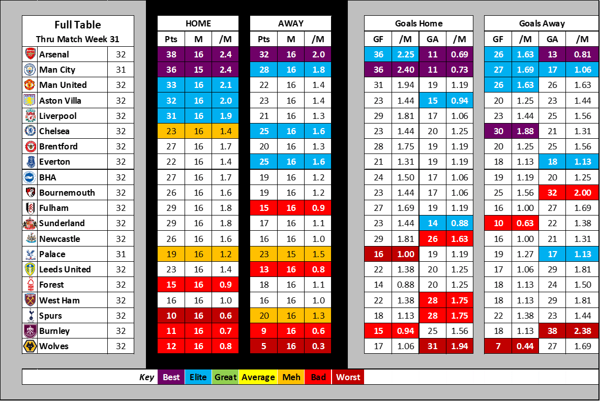As expected, Arsenal & City have been strong at home and on the road.