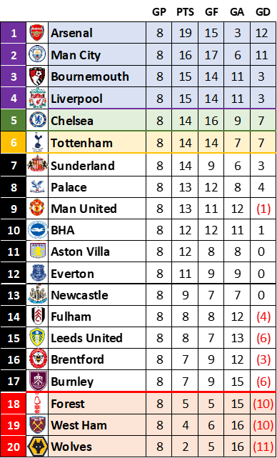 Still a long way to go but fun seeing Sunderland, Palace, BHA and Everton exceeding expectations.