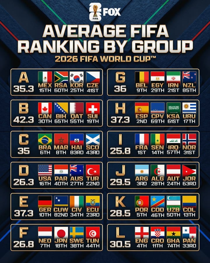 FIFA Rankings can be somewhat questionable, but there are rankings, so here are the rankings of each Group.