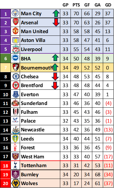 Why is City ahead of Arsenal in the Standings? Here are the tie breakersโฆ..
